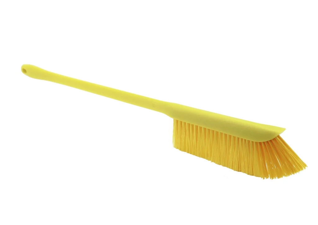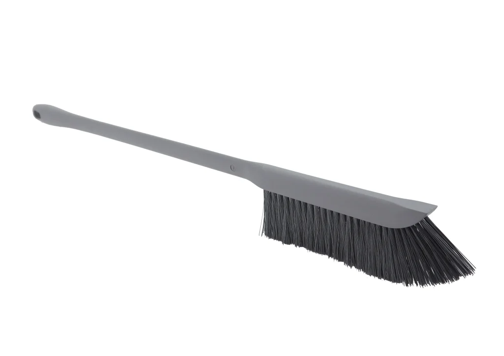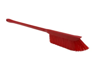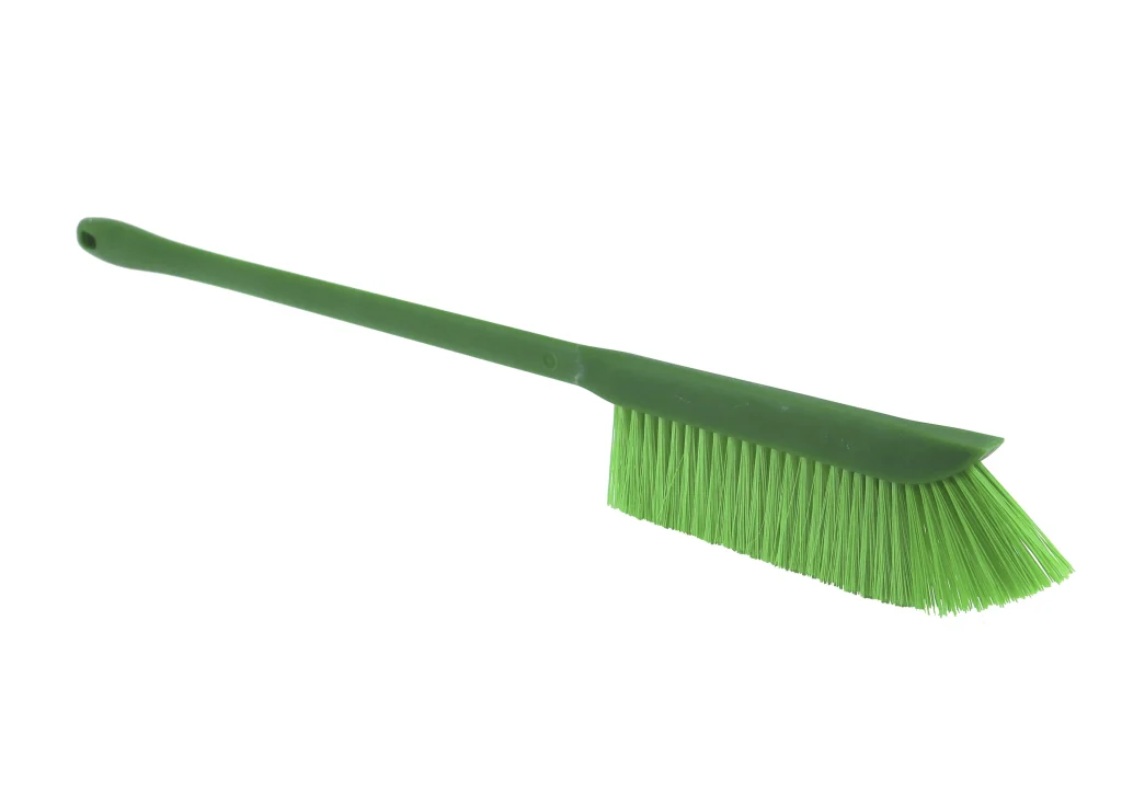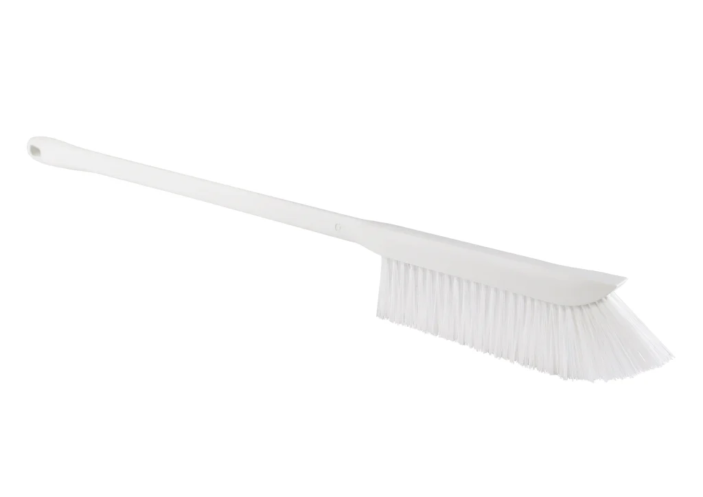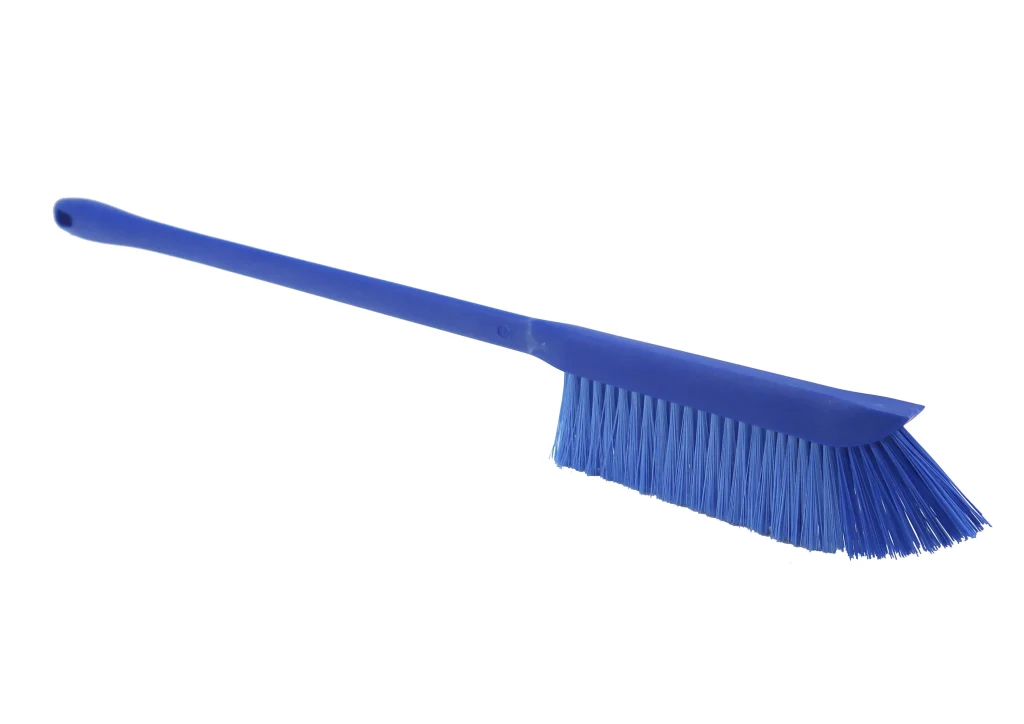 Cepillo con cerdas combinadas de rigidez media y dura, altura 55 mm. Mango largo de 660 mm permite llegar a espacios angostos como maquinaria de corte o cintas transportadoras.