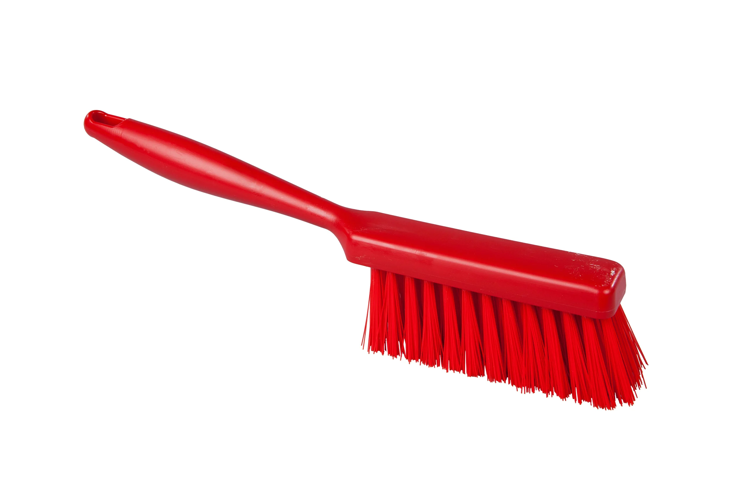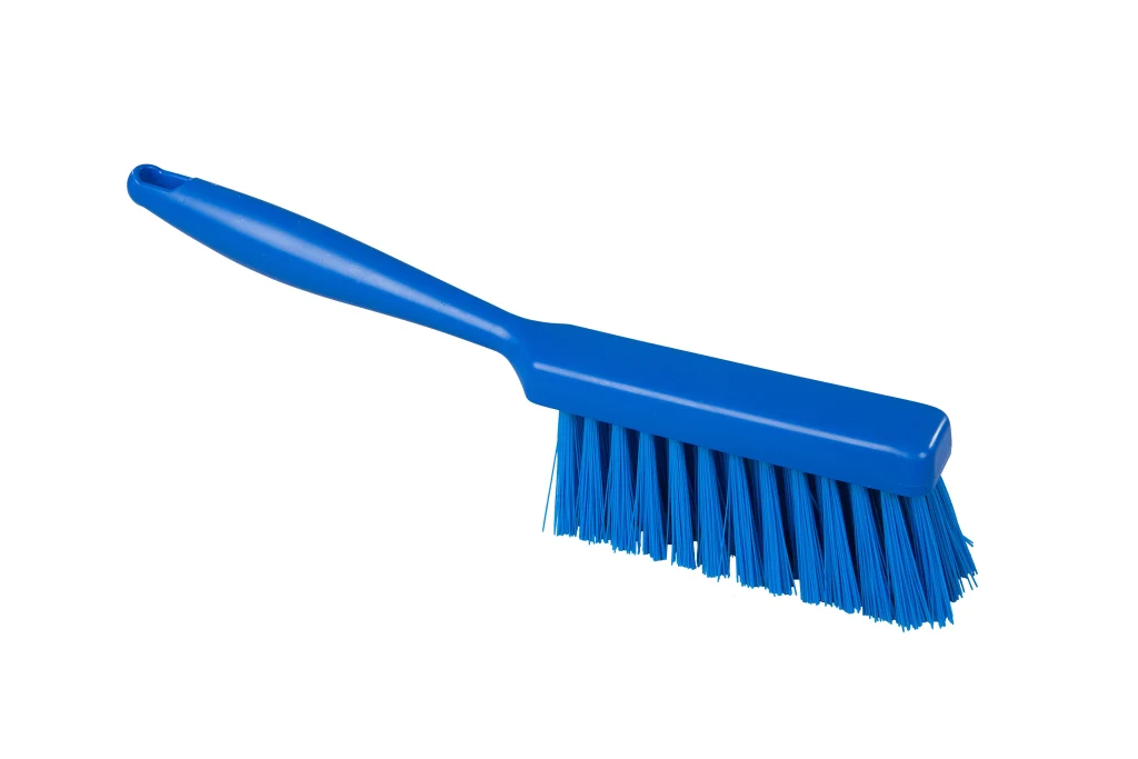 Cepillos panaderos de la línea Resin Set, con mango de polipropileno. La aplicación de resina en la base del cepillo brinda aún mayor seguridad al sistema de grapas que sostiene las cerdas. Su rigidez media los hace resistentes e ideales para limpieza general de superficies de trabajo y equipamiento en procesos de panadería.