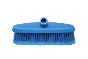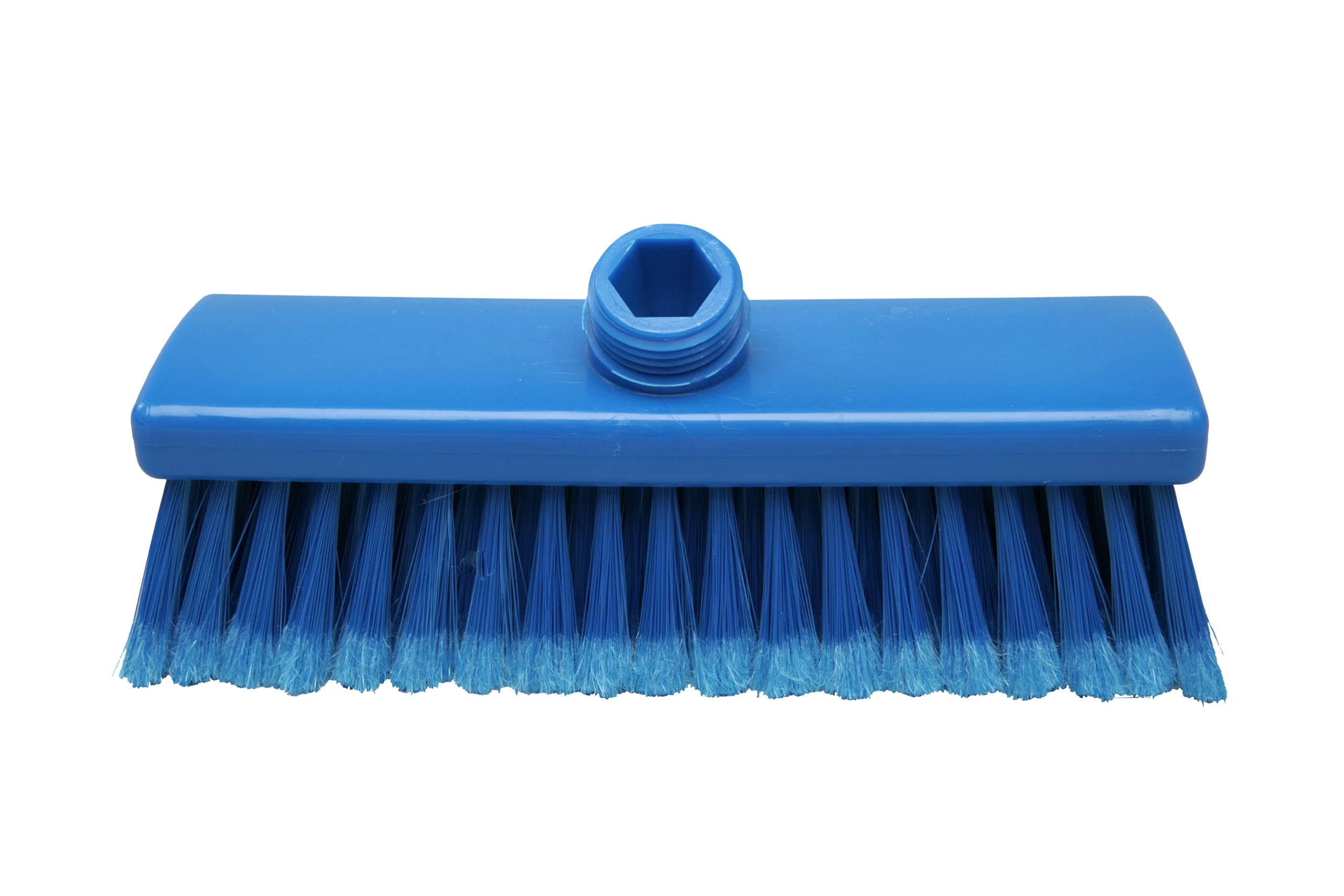 Cepillo 265 x 90 mm con filamentos suaves y despuntados de PBT 0.30 mm, canal y borde de goma. Ideal para limpieza húmeda de suelos y muros. Sin certificación PBH.