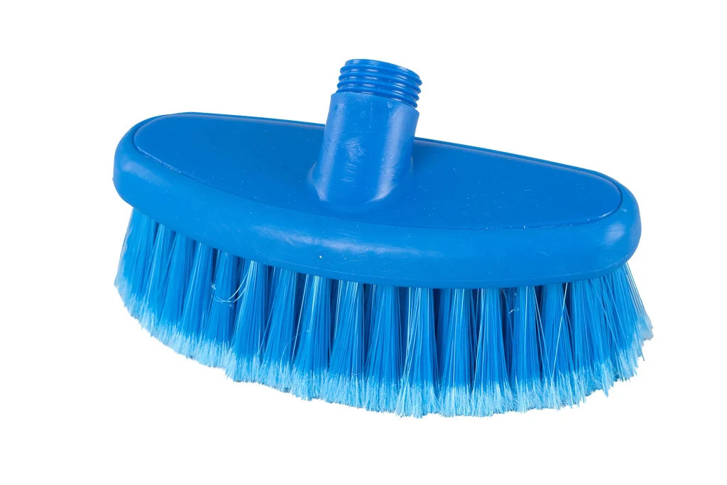 Cepillos para lavar fabricados en polipropileno con filamentos de PBT. Su diseño incorpora borde de goma protector y sistema de paso de agua, que guía el flujo directamente desde la base de las cerdas, permitiendo limpiar mientras se enjuagan los filamentos. Compatibles con mangos de rosca externa con paso de agua. Resistentes a temperaturas de hasta 80 °C en uso y 134 °C para esterilización.