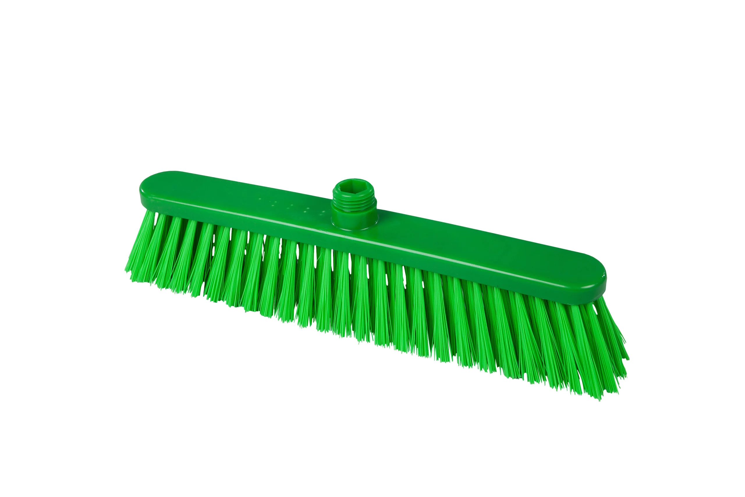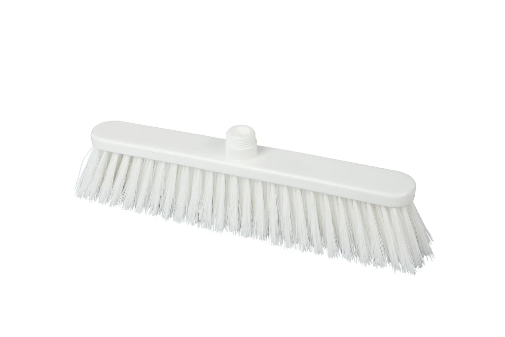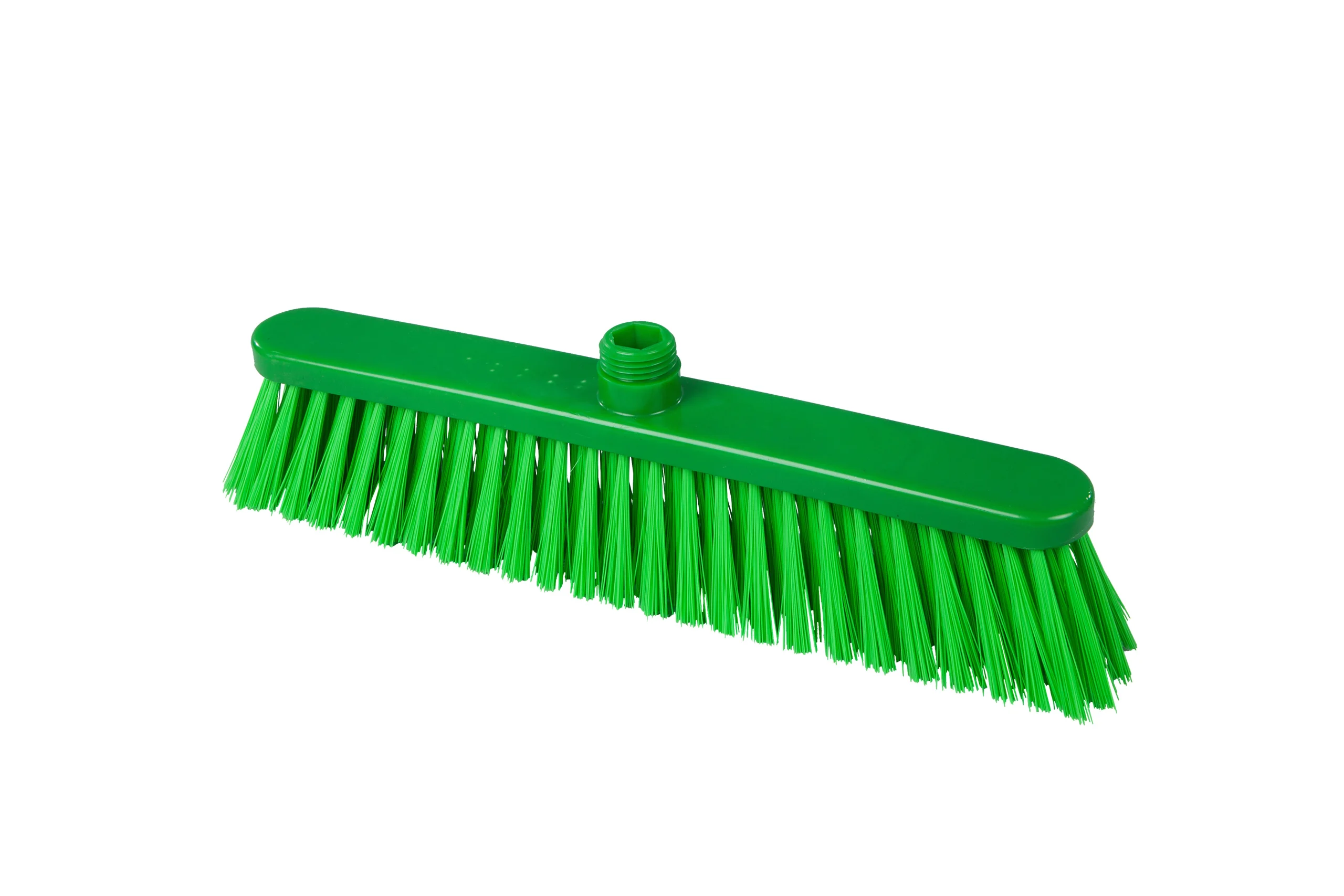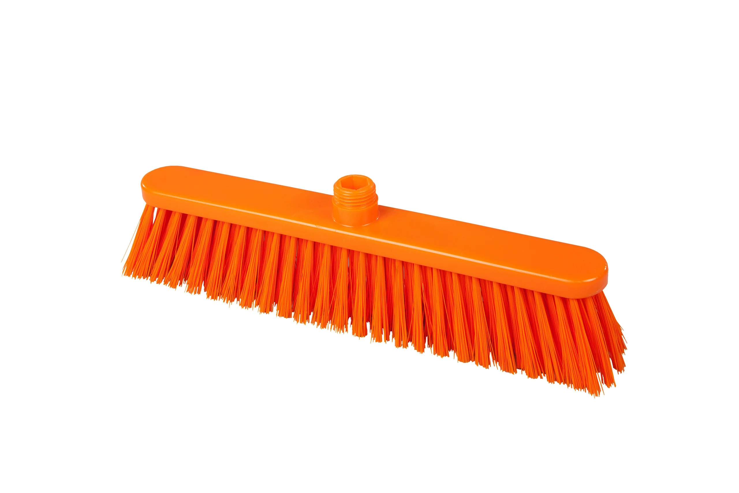 Escobas rectas de 70 mm de altura, fabricadas en polipropileno con filamentos de PBT resistentes a la deformación. Disponibles en versiones suaves o medias para distintos niveles de exigencia. Diseñadas para limpieza en seco de pisos. Soportan hasta 80 °C en uso y 134 °C en procesos de esterilización. Compatibles con mangos de rosca externa.
