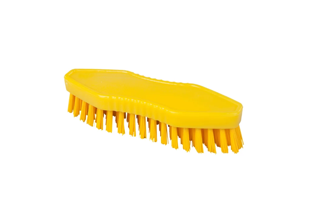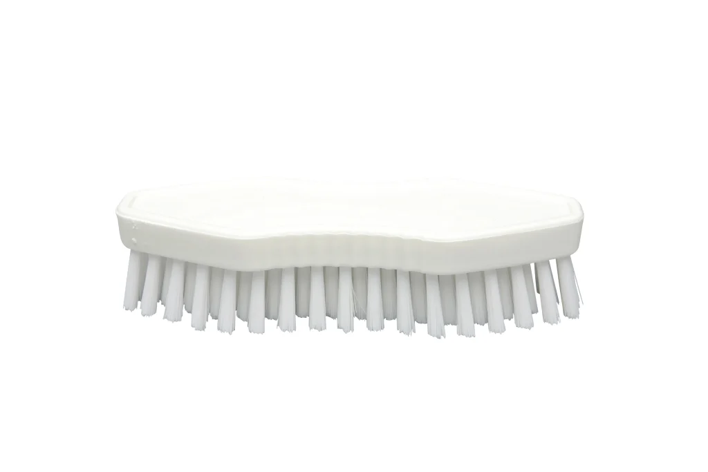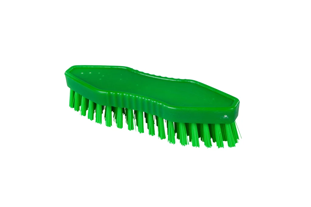 Escobilla de manos con cerdas duras de poliéster PBT, de 0.50 mm de grosor. Perfecta para eliminar suciedad más resistente en tareas de limpieza detallada.
