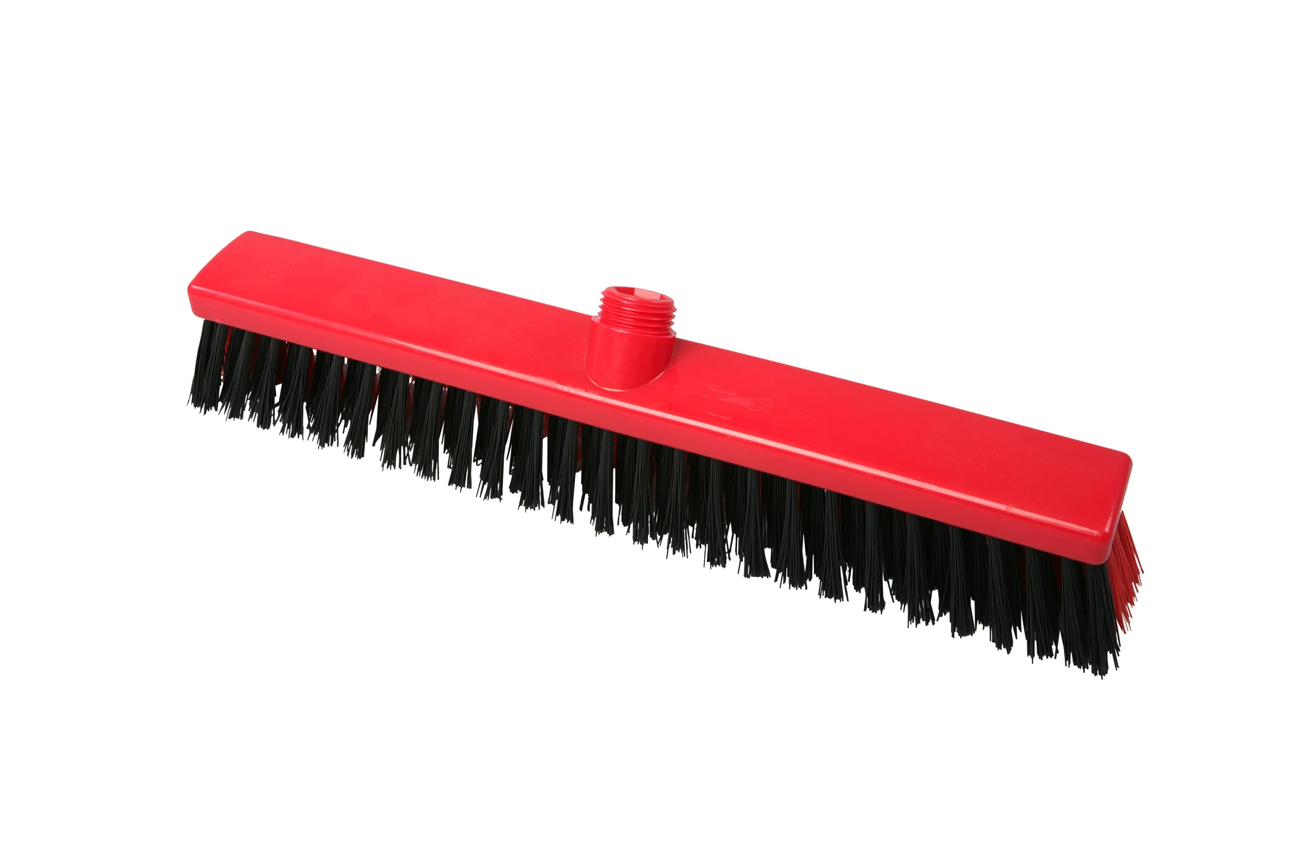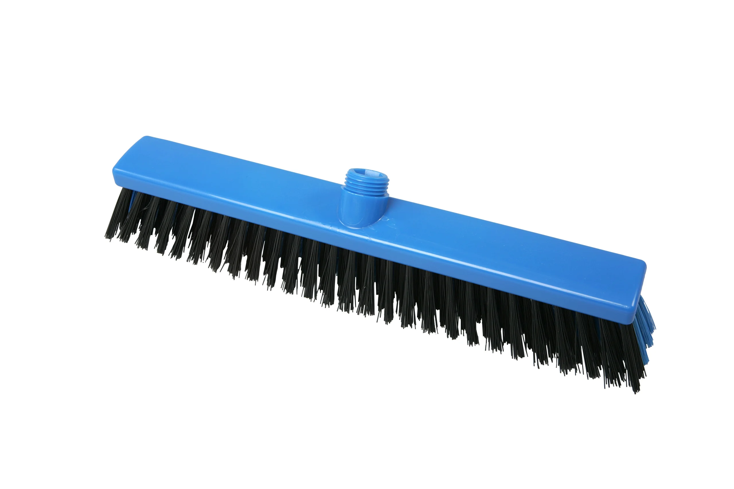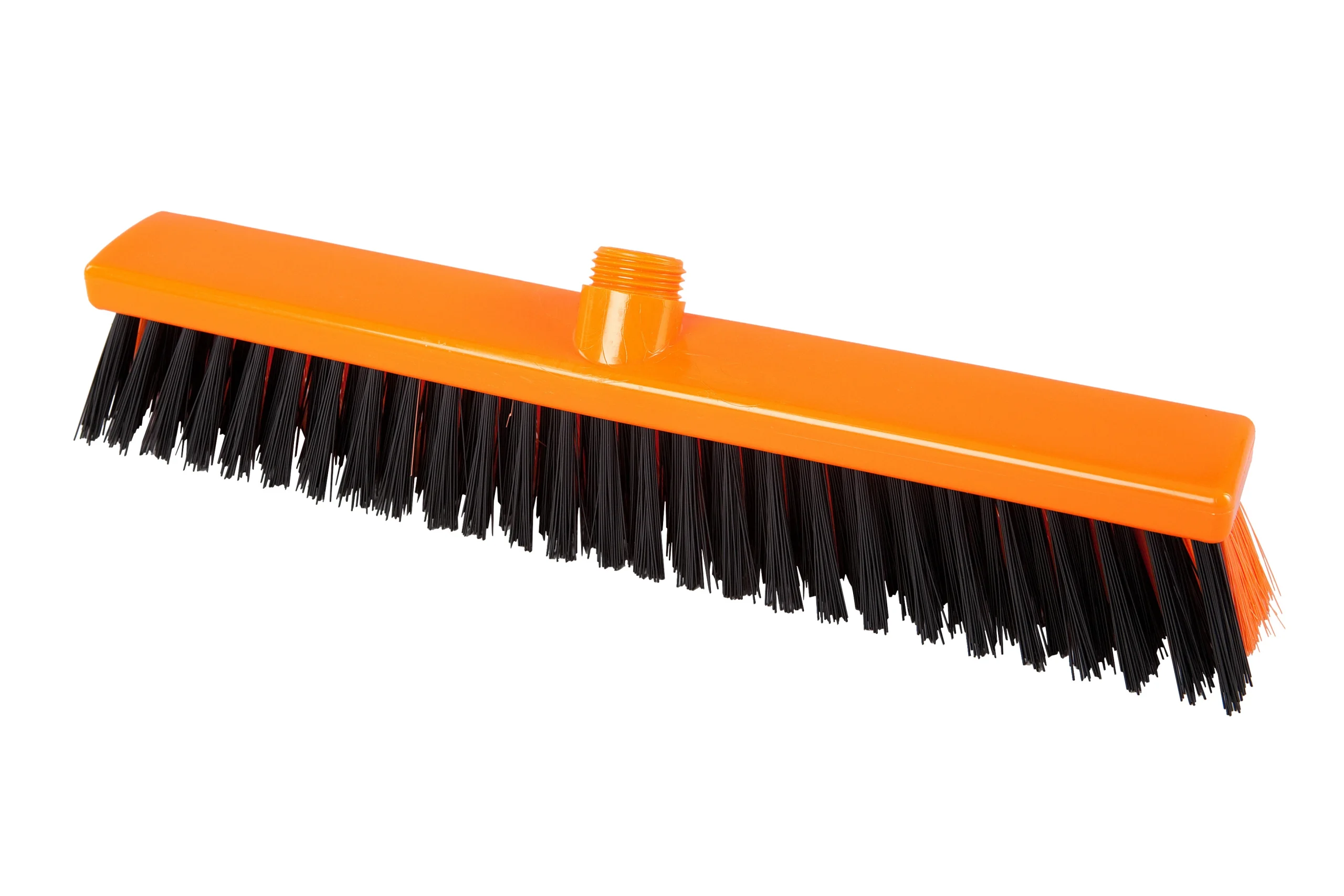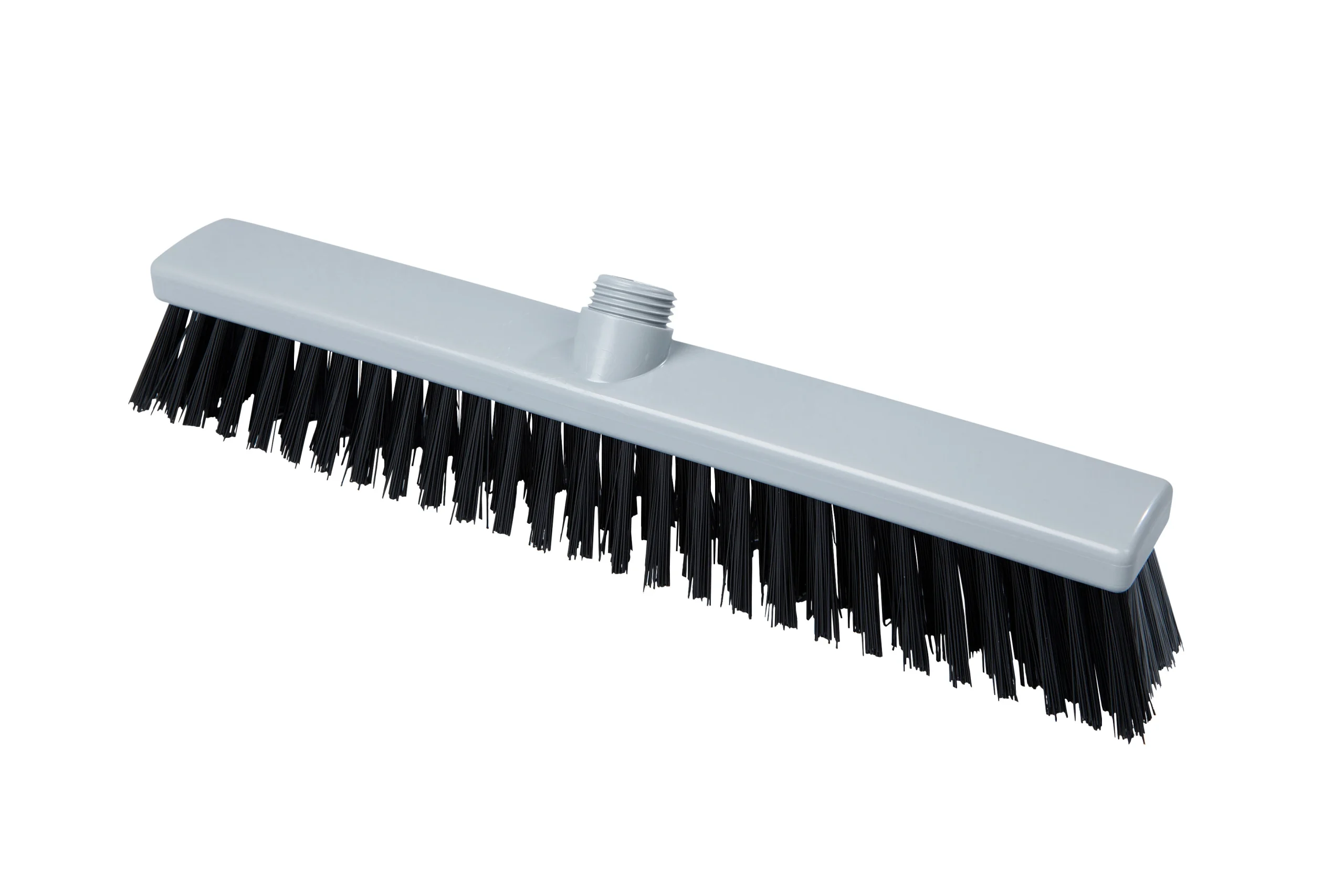 Escobillones combinados fabricados en polipropileno con filamentos de PBT en dos rigideces. Los filamentos frontales negros (0.70 mm) eliminan residuos incrustados, mientras que los posteriores más suaves (0.30 mm) capturan partículas finas. Ideal para una limpieza eficiente en pisos que combinan suciedad pesada con residuos livianos. Resistencia térmica de hasta 80 °C en uso y 134 °C para esterilización. Compatibles con mangos de rosca externa.