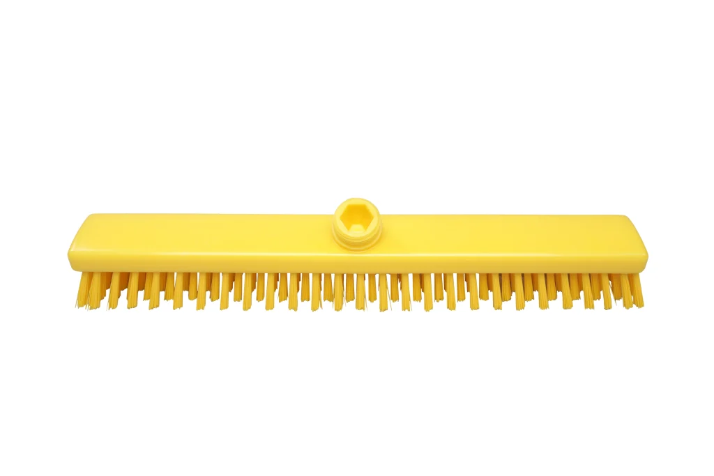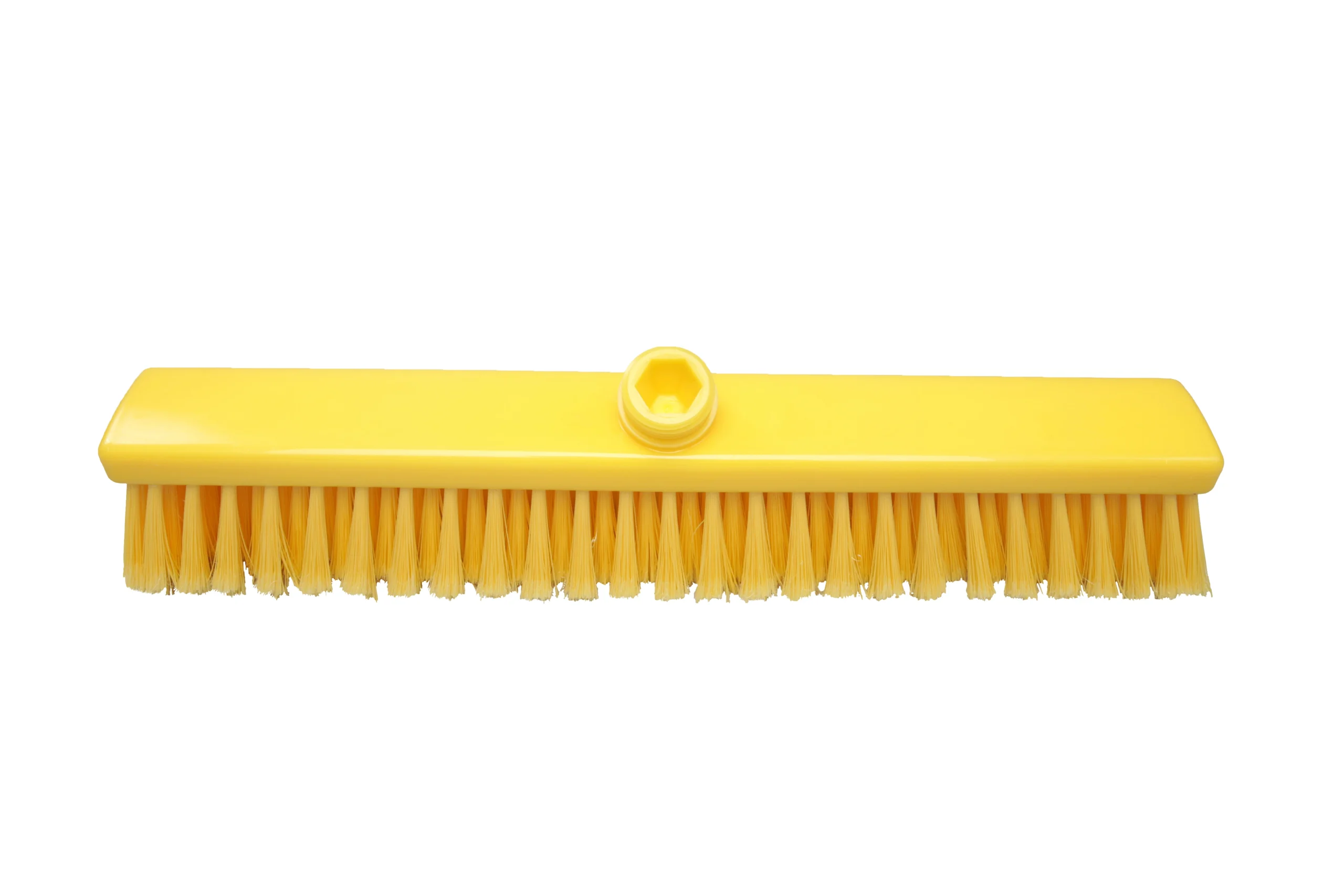 Cepillos de buque con cerdas duras de poliéster PBT, de alta resistencia y poca deformación, ideales para fregado intensivo en suelos y muros. El bloque está fabricado en polipropileno robusto que asegura durabilidad y manejo cómodo. Todo el cepillo cuenta con certificación PHB, garantizando seguridad y calidad para aplicaciones industriales exigentes. Compatible con mangos sin paso de agua.