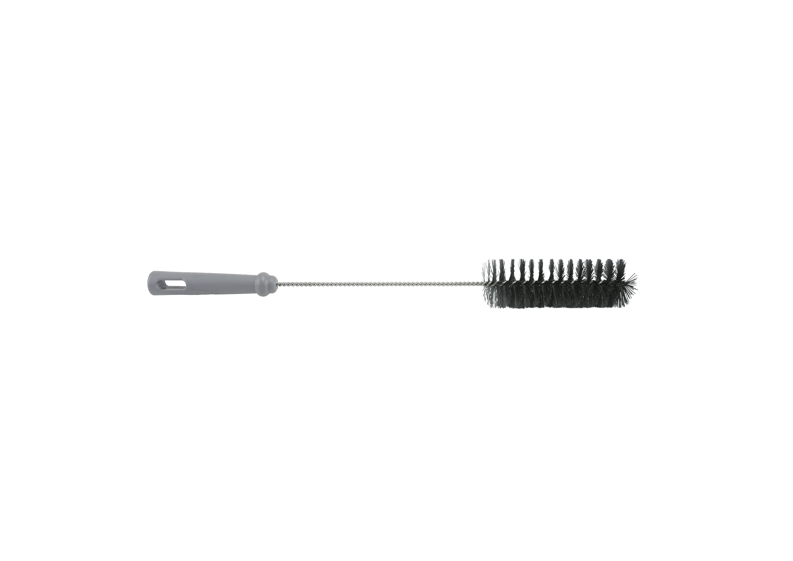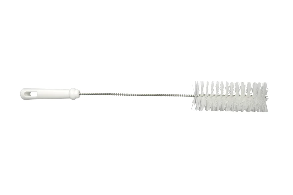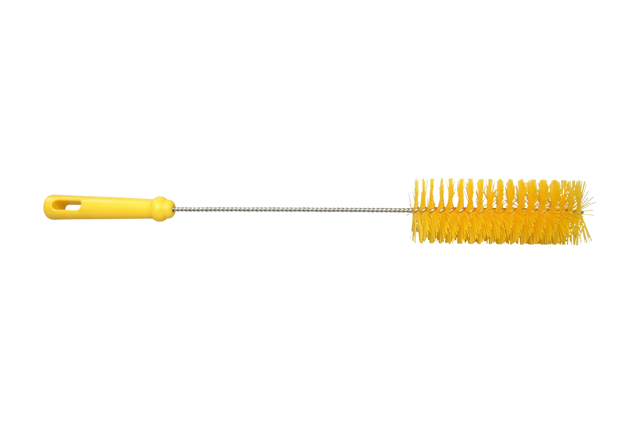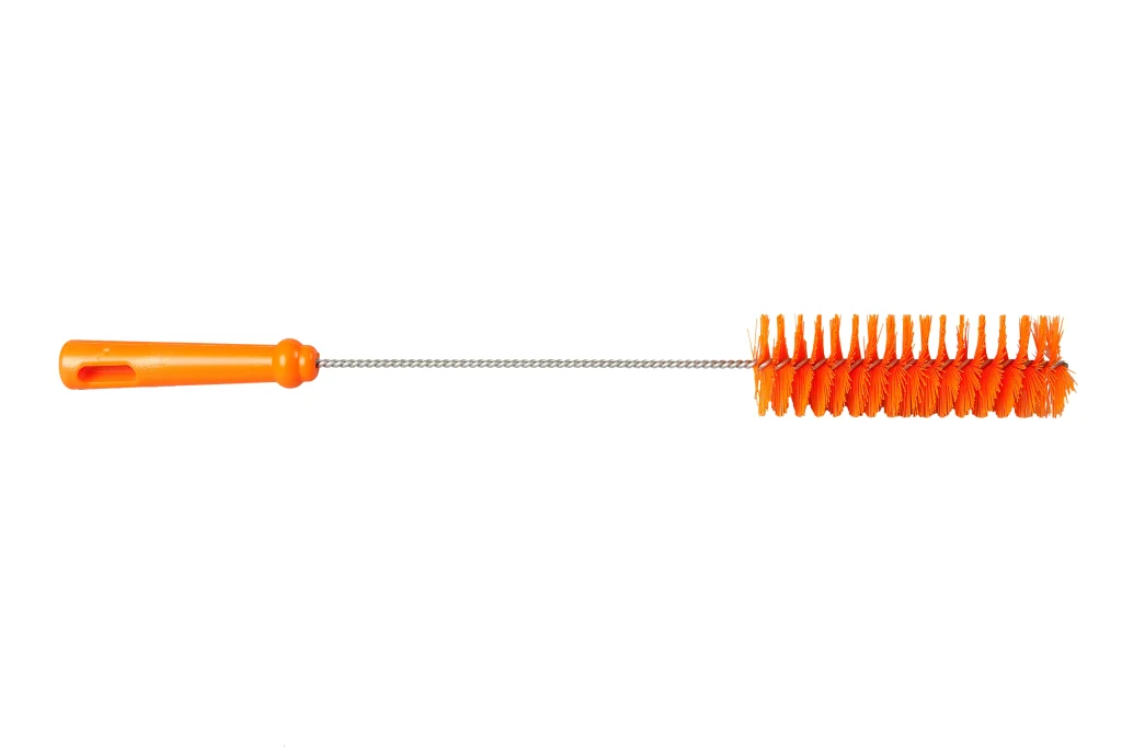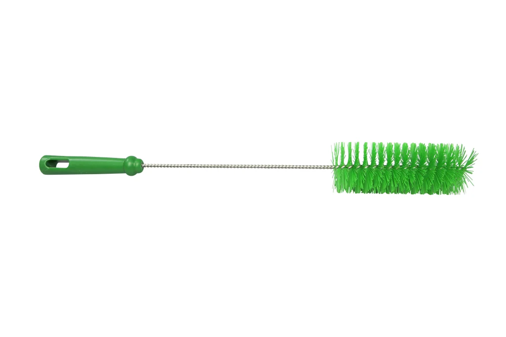 Cepillo de mano con mango largo y filamentos de poliéster PBT de dureza media, con radio de 50 mm. Diseñado para tuberías grandes, permite acceder con facilidad para remover residuos y mantener la higiene en espacios estrechos y exigentes.