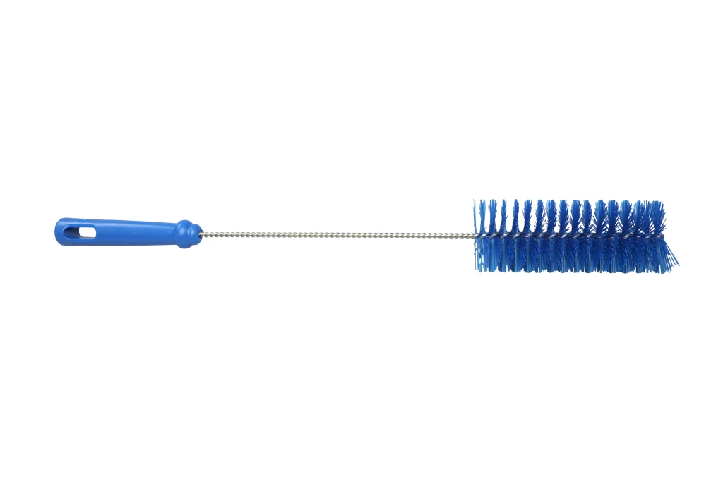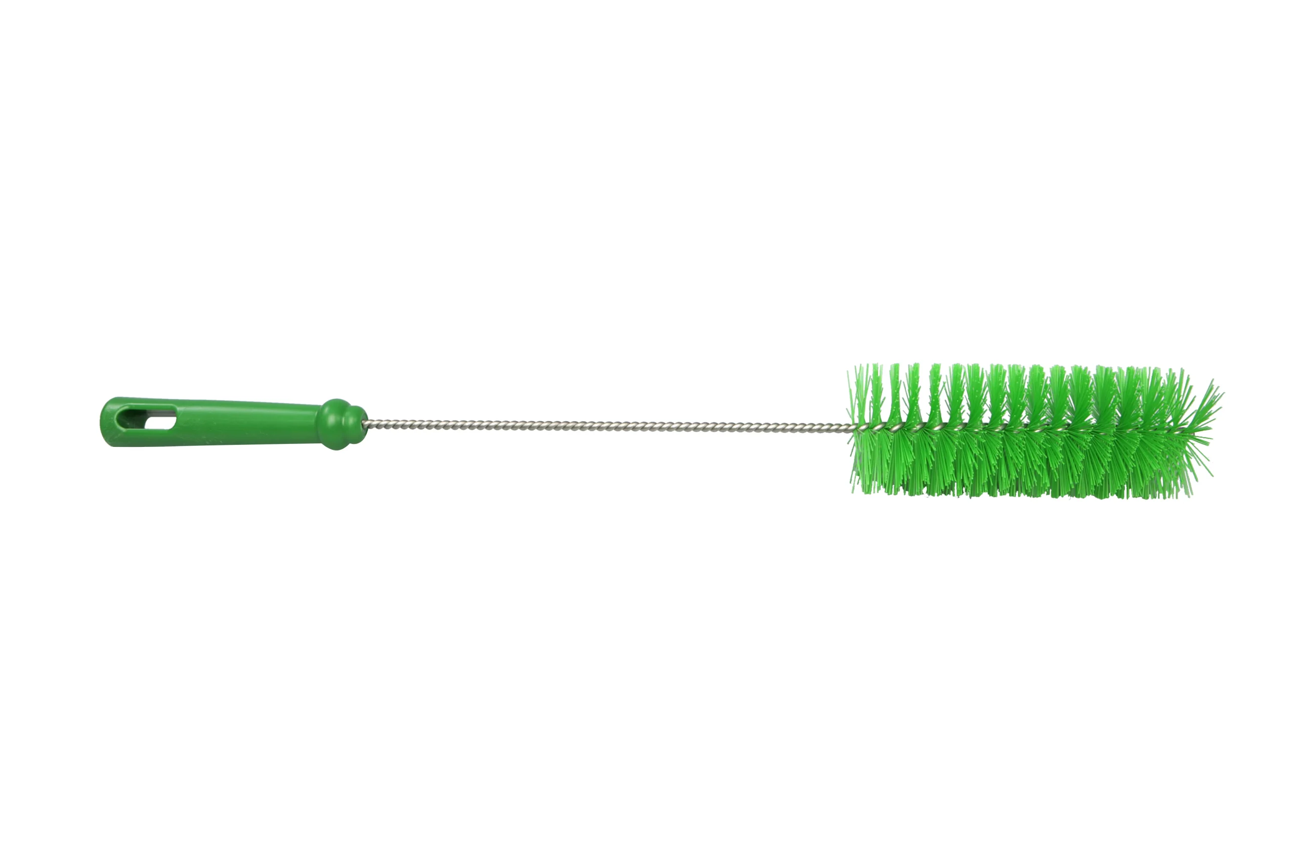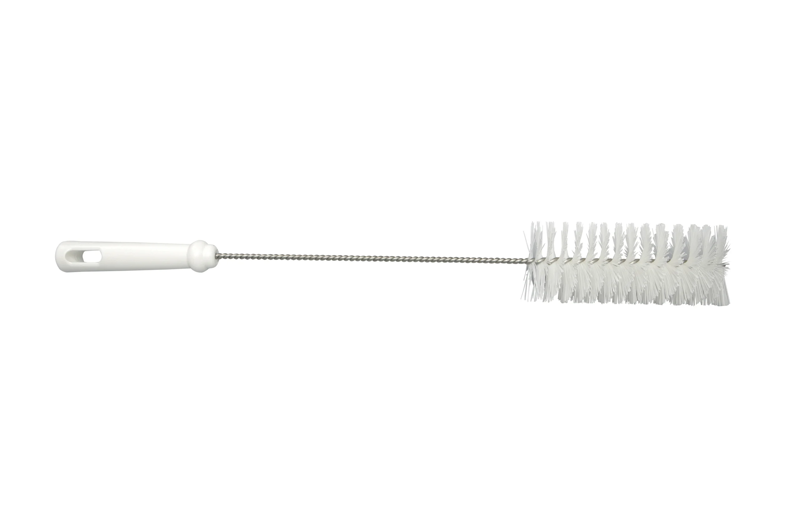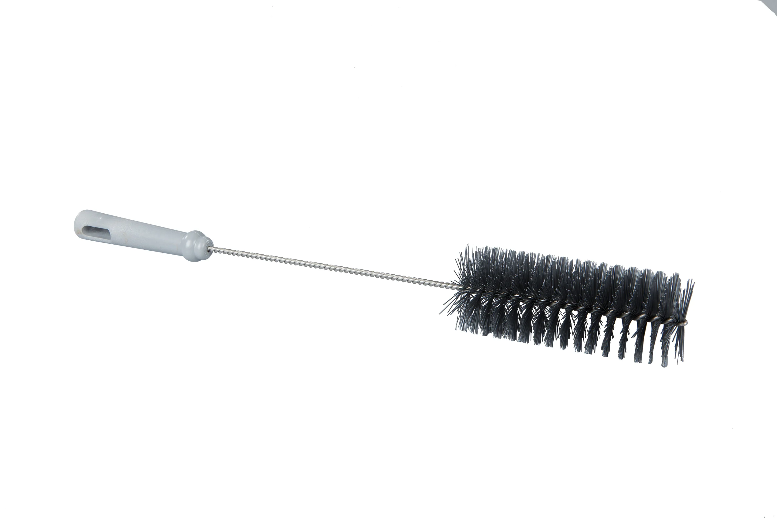 Cepillo de mano con mango largo y filamentos de poliéster PBT de dureza media, con radio de 60 mm. Diseñado para tuberías grandes, permite acceder con facilidad para remover residuos y mantener la higiene en espacios estrechos y exigentes.