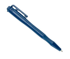 Bolígrafo detectable no retráctil con tinta gel azul. Recomendado para entornos fríos o de acceso restringido donde se prefieren artículos de una sola pieza. Cuerpo moldeado en plástico detectable, clip resistente y cartucho de larga duración.