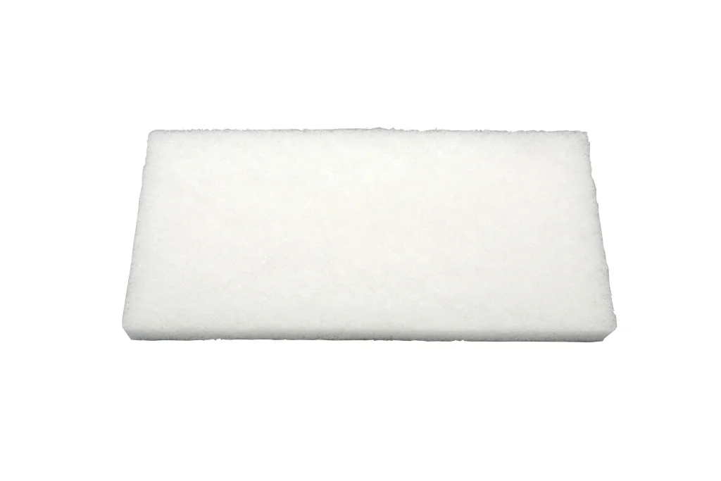 Pad abrasivo de 250 x 120 mm fabricado con fibras sintéticas flexibles como nylon y poliéster, diseñado para eliminar marcas y residuos en pisos, muros y otras superficies. Disponible en cinco niveles de abrasividad, fácilmente identificables por su color: muy suave (blanco), suave (rosado), medio (azul), duro (verde) y muy duro (negro). Soporta temperaturas de hasta 100 °C. (Compatible con 47101 y 57101).